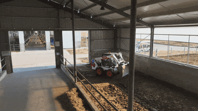 在吉林长春某国营牧场内,山猫S550在清粪作业中表现卓越。在湿热的夏秋季节,及时清理粪便对奶牛健康至关重要,山猫的高效作业确保了牧场的洁净与安全。